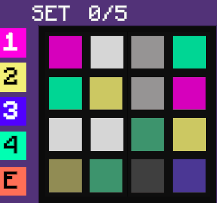 Disco themed 2 player competitive sudoku-style game. Both players use the same keyboard to move around the grid and enter colours to complete the disco grid. Each row should contain no repeating colours, and the grids increase in difficulty as you play. If you see the 'sabotage' speech bubble, the first player to press their sabotage button temporarily disables/ removes colours from the other player's grid. The first player to complete 5 grids wins.